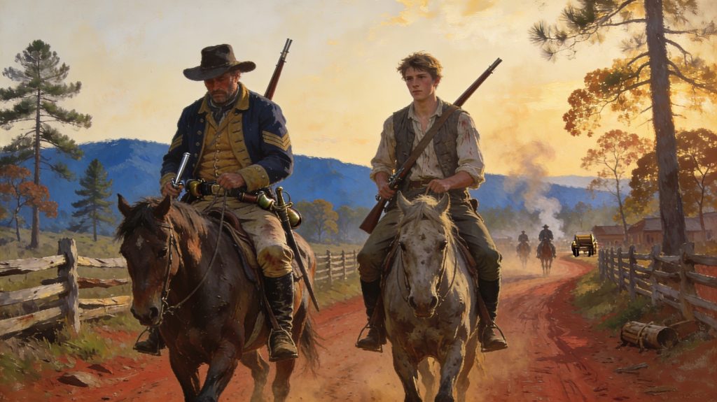Down the road, after one long, look back at the ones he loved most in the world, James Butler turned his horse to ride south one more time. He carried the quiet determination of a man who had already given everything the war had asked.