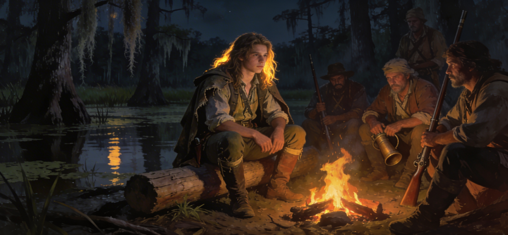 When I finally got clear of their reach, there was no going back to Ninety Six as if nothing had happened. The committees watched everything, and a man marked as I was could not breathe without their leave. I slipped south and west, through pine barrens and swamps, into the wild reaches near East Florida, where the King’s authority still held and the Whigs’ writ grew thin. There I met other refugees—men who had been whipped, plundered, or hunted because they would not bow to the new order. Around our campfires, stories of Whig “justice” were as common as smoke.